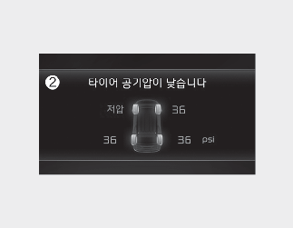 개별 저압 타이어 위치 및 공기압 표시
