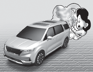 즉시 안전한 장소에 정차하여 엔진을 정지시킨 후 소화기 등으로 진화하십시오. 진화 등의 응급조치를 하지 못할 상황이라면 사람들의 접근을 막고 경찰서나 소방서에 연락하여 필요한 조치를 취하십시오.