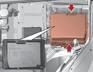 * 퓨즈의 용량 및 명칭은 차량에 따라 변경될 수 있으므로 퓨즈/릴레이 박스 커버 안쪽에 부착되어 있는 퓨즈 라벨의 내용을 참고하십시오.