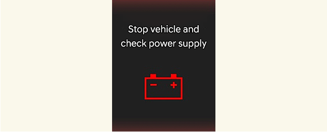 Stop vehicle and check power supply (Anhalten wenn sicher! Strom- versorg. prüfen)