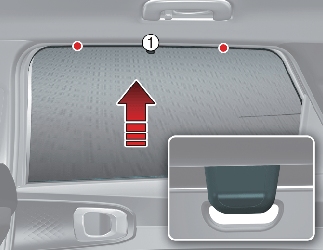 Ziehen Sie den Vorhang am Knauf nach oben (1).