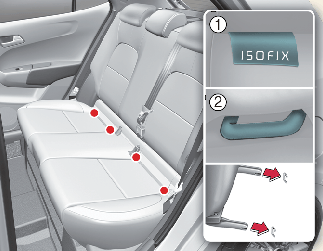 Los anclajes ISOFIX se encuentran en las posiciones laterales del asiento trasero (derecho e izquierdo). Las ubicaciones se muestran en la ilustración.