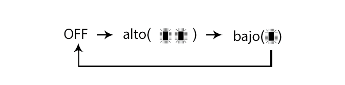 • Cada vez que se pulse el interruptor, el ajuste de la temperatura del asiento cambia como sigue: