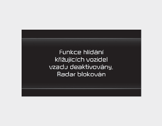 Pokud asistent pro předcházení kolizi s projíždějícím vozidlem při couvání nepracuje správně, zobrazí se (a po určité době