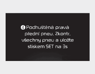 Podle postupu stiskem tlačítka TPMS SET resetujete systém a uložíte aktuální tlak v pneumatikách.