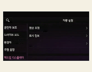 시동「ON」상태에서 인포테인먼트 시스템의 설정 메뉴에서 '차량→헤드업 디스플레이'에서 기능을 설정/해제할 수 있습니다.