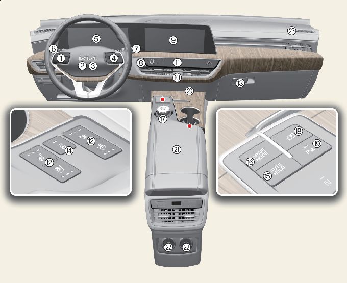 * 실제 차량과 다를 수 있습니다(스위치의 형상 및 배열은 사양 적용에 따라 달라질 수 있습니다).