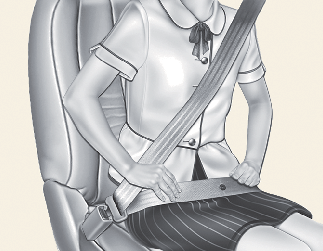 안전벨트의 골반띠 부분이 부드럽게 골반 부분을 지나도록 해야 합니다.
