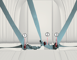 중앙좌석 안전벨트를 사용하지 않을 때에는 3점식 안전벨트가 꼬이지 않도록 수납공간에 보관하십시오.