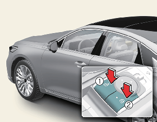 중앙 도어 잠금(2)/해제(1) 스위치를 이용하면 모든 도어가 잠금/해제됩니다.