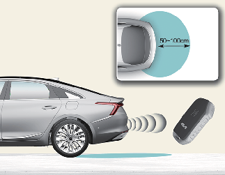 트렁크 후방 약 50~100 cm 이내에 스마트키가 감지되면 웰컴 경보가 작동하면서 기능이 작동됩니다.