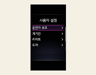 * 사용자 설정에 표시되는 설정 항목은 차량의 사양 구성에 따라 본 사용 설명서와 다르게 나타날 수 있습니다.