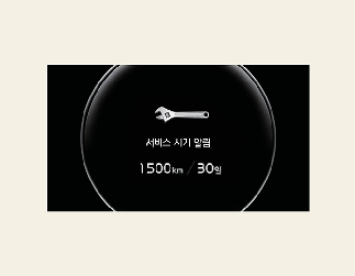 잔여 주행 거리 1,500 km 또는 잔여 기간 30일 시점부터는 시동「ON」시마다 서비스 알림 정보가 LCD 표시창에 자동으로 수 초 동안 표시됩니다.