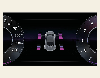 Full LCD 타입의 계기판에서는 인포테인먼트 시스템에서 주행 보조 기능을 설정할 수 있습니다. 인포테인먼트 시스템 화면에서 설정 메뉴를 선택한 후에 해당 항목들을 설정하십시오.