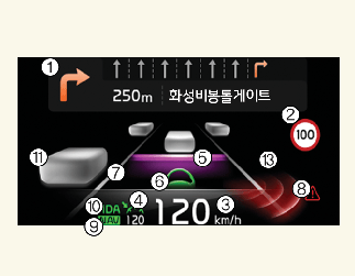 * 설명을 위한 샘플로 실제 차량에 적용된 헤드업 디스플레이 형상과 다를 수 있습니다.