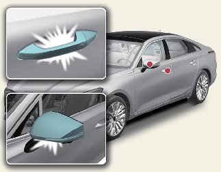 실외 도어 손잡이 잠금/잠금 해제 버튼(버튼 타입의 경우) 누름 또는 도어 잠금 해제 센서부(터치 센서 타입의 경우) 터치