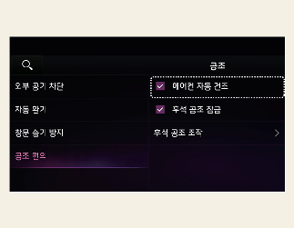 에어컨 자동 건조 기능은 초기 출고 시 기능이 활성 상태로 설정되어 있으므로, 기능을 중지하려면 인포테인먼트 시스템의 설정 메뉴에서 기능을 해제하십시오.