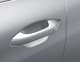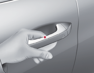 (터치 센서 타입의 경우) 앞좌석 실외 도어 손잡이에 있는 음각 부분으로 된 도어 잠금 센서부를 약 1초간 터치하십시오.