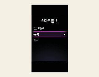 * 인포테인먼트 시스템 사양 적용 시: 인포테인먼트 전체 메뉴 화면에서 '설정→차량→디지털 키→스마트폰 키' 하위 메뉴로 이동하여 '등록'을 누르십시오.