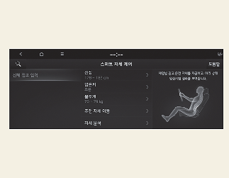 인포테인먼트 시스템 화면에서 '설정→차량→시트→스마트 자세 제어' 메뉴를 선택하여 운전자의 신체 정보를 입력하십시오.