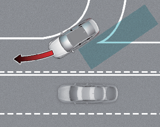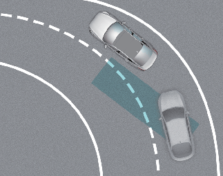 커브가 있는 길에서는 옆 차로에 있는 차량을 인식하지 못해 후측방 충돌방지 보조가 정상적으로 작동하지 않을 수 있습니다.