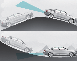 오르막길이나 내리막길에서는 옆 차로에 있는 차량을 인식하지 못해 후측방 충돌방지 보조가 정상적으로 작동하지 않을 수 있습니다.