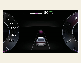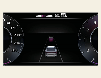 내비게이션 기반 스마트 크루즈 컨트롤 기능이 작동하면 계기판에 다음과 같이 표시됩니다.