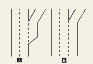 내비게이션에서 분기형태 진출입로로 경로를 안내하고, 마지막 차로로 주행하는 경우 진출입로 진입 전에 자동으로 감속합니다. 분리형태의 진출입로 에 대해서는 진입 전에 자동으로 감속되지 않습니다.