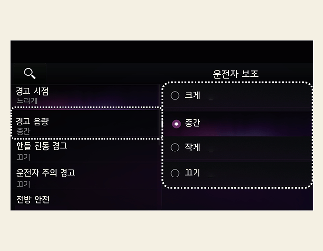 경고 음량을 변경하면 다른 운전자 보조 기능의 경고 음량도 같이 변경될 수 있습니다. 고려하여 변경하십시오.