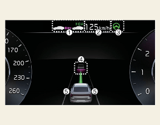 전방 차량 유무 및 설정된 차간거리 단계가 표시됩니다.