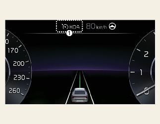고속도로 주행 보조 기능의 상태를 보기 위해서는 계기판을 주행 보조 모드로 설정하십시오. 계기판을 주행 보조 모드로 설정하기 위한 자세한 사항은 자세한 내용의 내용을 참고하십시오.