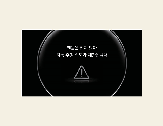 운전자가 스티어링 휠을 일정 시간 동안 잡지 않으면, 단계적으로 핸즈오프 경고문이 표시되고 경고음이 울립니다.
