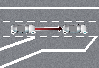 주행속도가 60 km/h 이상인 경우, 옆 차로에 근접 차량이 있으면 차로 내에서 반대 방향으로 편향하여 주행하도록 도와줍니다.