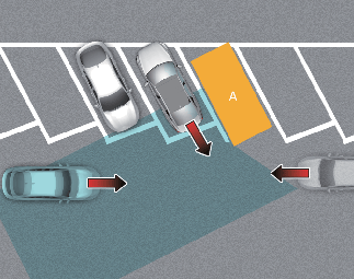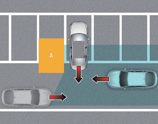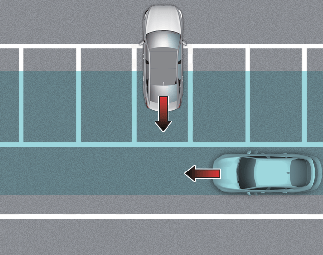 사선으로 주차된 차량이 후진으로 출차할 경우 좌/우측에서 다가오는 차량을 인식하지 못해 후방 교차 충돌방지 보조의 성능이 저하되어 경고를 하지 않거나 제동을 보조하지 않을 수 있습니다.