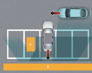 자차 후방이나 측면에 구조물이 있는 곳에서 후진주차를 할 경우, 자차 전방에서 움직이는 차량을 인식하여 후방 교차 안전 시스템 작동으로 불필요한 경고, 제동을 할 수 있습니다.