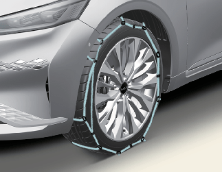 타이어 체인은 품질이나 성능이 적합한 체인(직물형)을 사용하십시오. 품질이나 성능이 부적합한 체인을 사용하게 되면 차체를 손상시킬 수 있습니다.