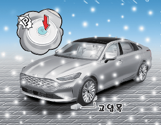 매우 추운 날씨의 주·정차 시 주차 브레이크를 작동해 놓으면 브레이크 장치가 얼어 붙어버릴 우려가 있으므로 주차 브레이크는 가능한 풀어 놓은 상태에서 주차하십시오. 경사 없는 평지에 변속 위치를「P」(주차) 위치로 타이어에는 고임목을 받쳐 차가 움직이지 않도록 하십시오.