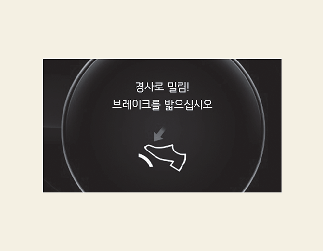 언덕길에서 차량 정차 시, 브레이크 또는 주차 브레이크를 사용하십시오.