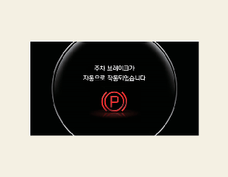 자동 정차 기능 작동 상태에서 전자식 파킹 브레이크 체결 상태로 전환된 후 LCD 표시창에 경고 문구가 나타나고 경고음이 1회 울립니다.