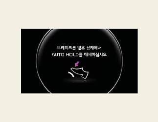 브레이크 페달을 밟고「AUTO HOLD」버튼을 눌러 자동 정차 기능을 해제할 수 있습니다.