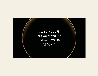 자동 정차 기능을 사용하기 위해「AUTO HOLD」버튼을 누를 때, 운전석 도어, 후드, 트렁크가 열려 있을 경우 LCD 표시창에 경고 문구가 나타나고 경고음이 울립니다. 운전석 도어, 후드, 트렁크가 닫혀 있고 브레이크 페달을 밟은 상태에서「AUTO HOLD」버튼을 누르십시오.