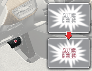 「AUTO HOLD」표시등은 초록색에서 흰색으로 바뀌고, 자동 정차 기능은 작동 대기 상태가 됩니다.