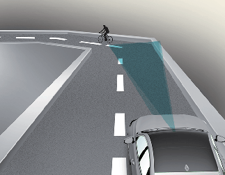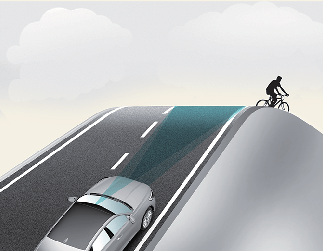 오르막길이나 내리막길에서는 전방에 있는 차량, 보행자 및 자전거 탑승자를 인식하지 못하여 경고, 제동 또는 조향을 도와주지 않을 수 있습니다.