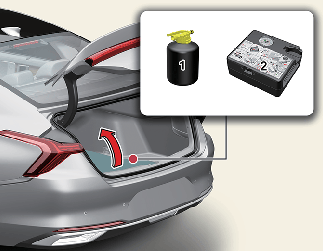 * LPI 차량의 경우, 타이어 임시 수리 장치는 우측에 위치한 가방 안에 있습니다.