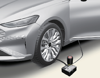 타이어 공기압 높이기: 컴프레서 전원을 켜고 규정 공기압으로 조절하십시오.