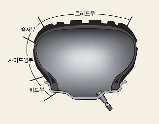 트레드부: 타이어가 노면과 접촉하는 두꺼운 고무층 부분
