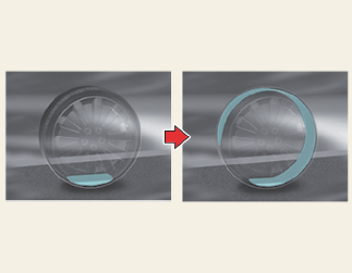 타이어 공기압을 규정 공기압( 자세한 내용 또는 운전석 옆 중앙 필러에 부착된 "타이어 표준 공기압 라벨" 참고)으로 조절하십시오.