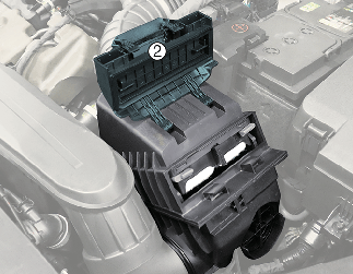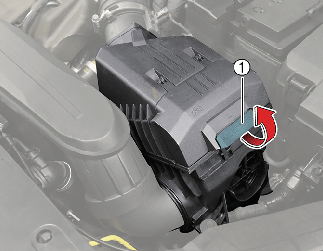 에어클리너 커버 측 레버(1)를 위로 당겨 잠금 상태를 해제하십시오.