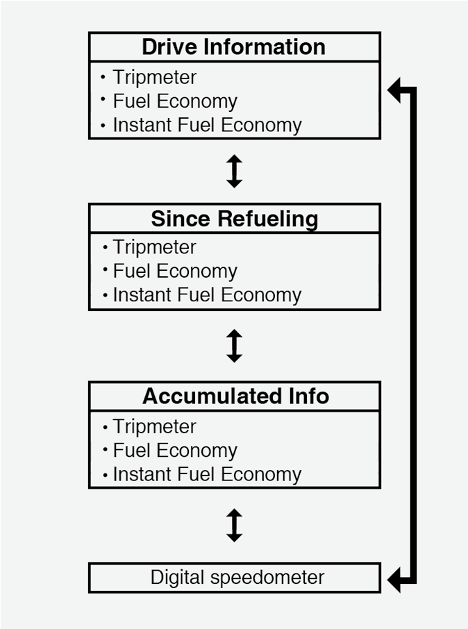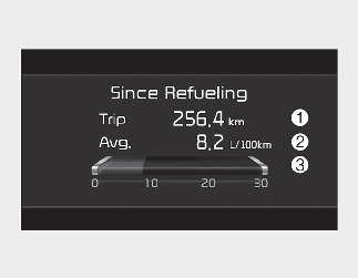 Si vous appuyez sur le bouton « OK » pendant plus d’une seconde après l’affichage de « depuis avoir fait le plein », les informations seront réinitialisées.