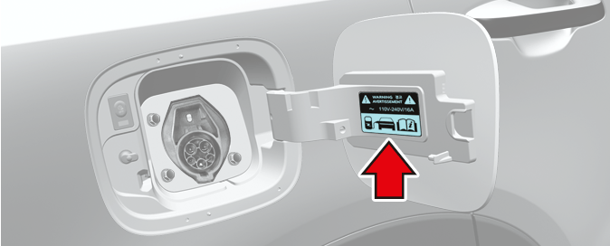 The fuel label is attached on the fuel filler door.